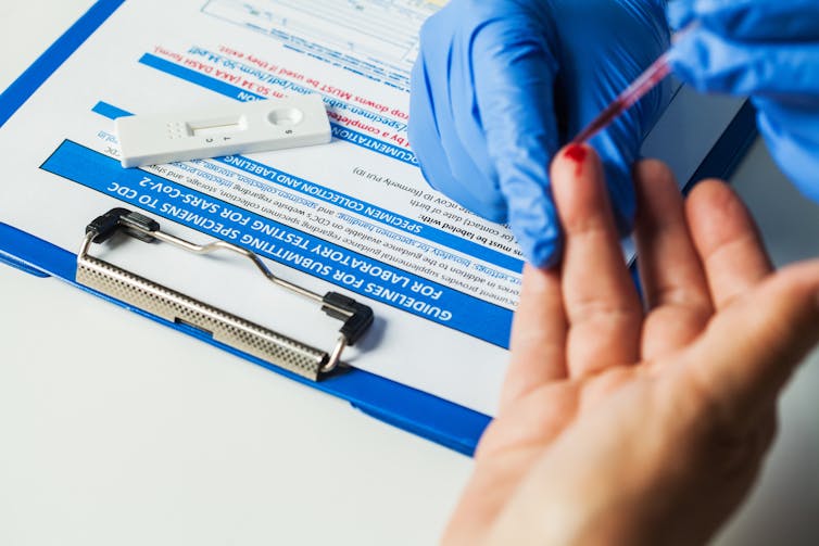 Extracción de muestra de sangre para test rápido de anticuerpos. Shutterstock / Cryptographer